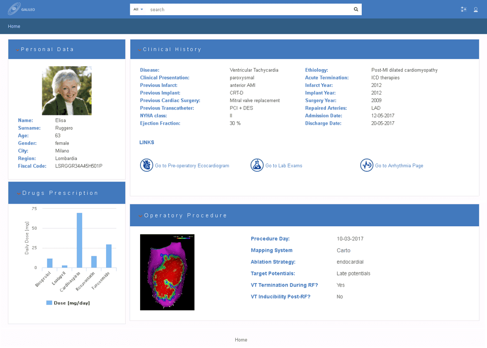 Here, we present a novel platform, named Galileo, able to ingest unstructured data generated from a patient’s hospitalization (in the setting of an Electrophysiology Department dedicated to arrhythmia management), to combine and deliver them to users at a single access point.