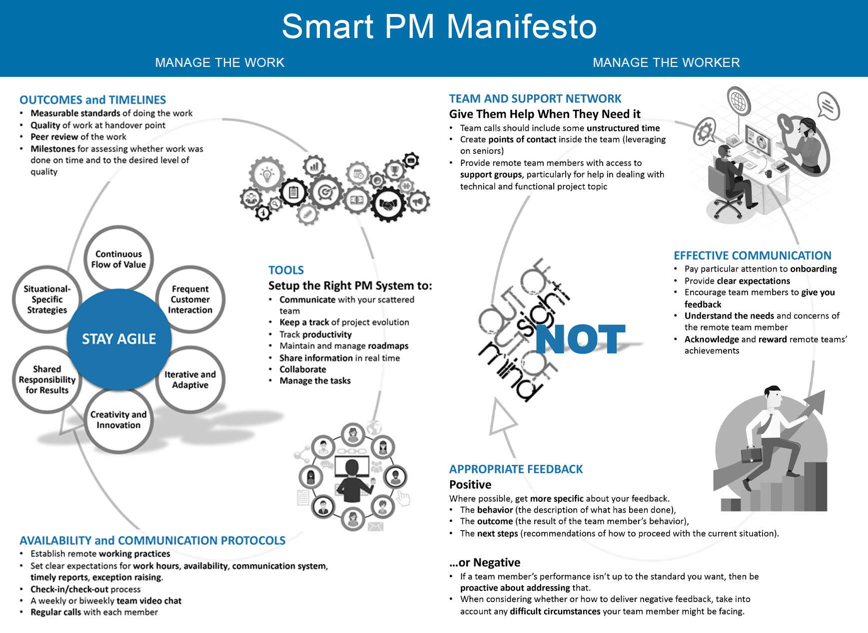 Accanto agli strumenti tecnologici, si deve evidenziare anche tutta una serie di buone pratiche che devono entrare all’interno della cultura aziendale e che riguardano sia i collaboratori che i coordinatori.
